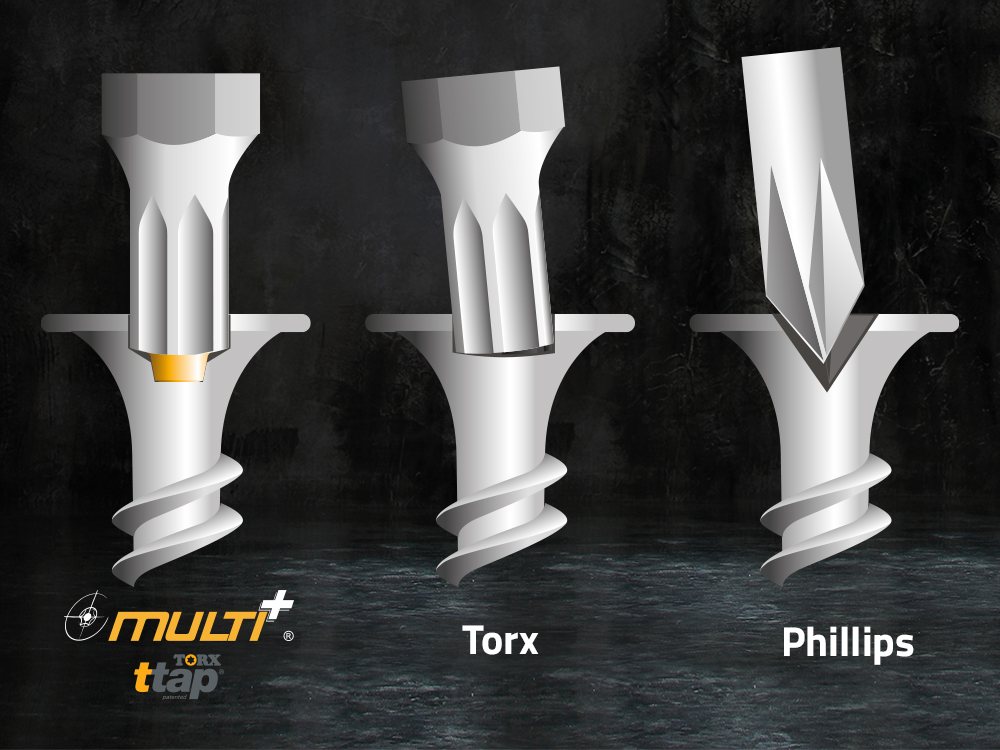 Op onze stand zullen we onder andere onze Multi+® TORX® ttap universeelschroef demonstreren.